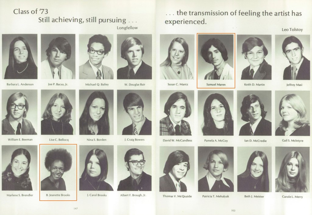 Hopewell Valley High School 1973 yearbook – Jeannie and Sam.